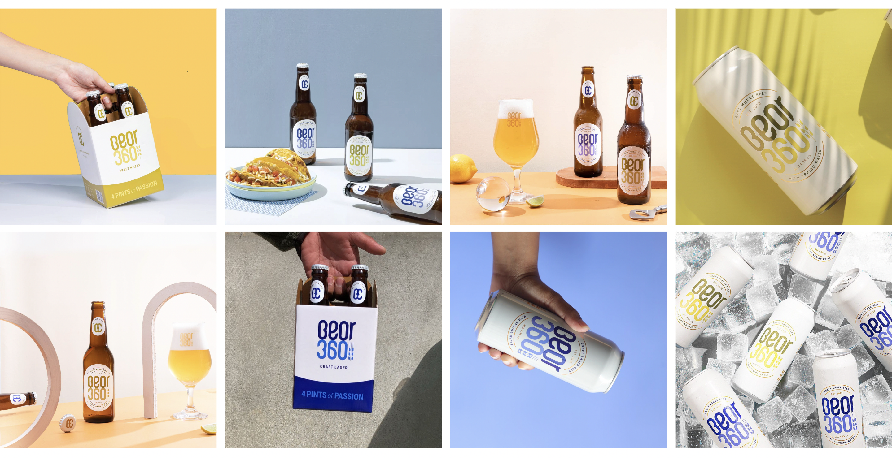 The photographic essay below shows the chaos and challenging lighting conditions that the beer would face at retail; from the darkest to the brightest spaces, sitting and surviving between a myriad of competitive product graphics. To combat this, the label is kept refreshingly clean and minimal — A bold yet refined Beor360 written with a lot of white space around it.