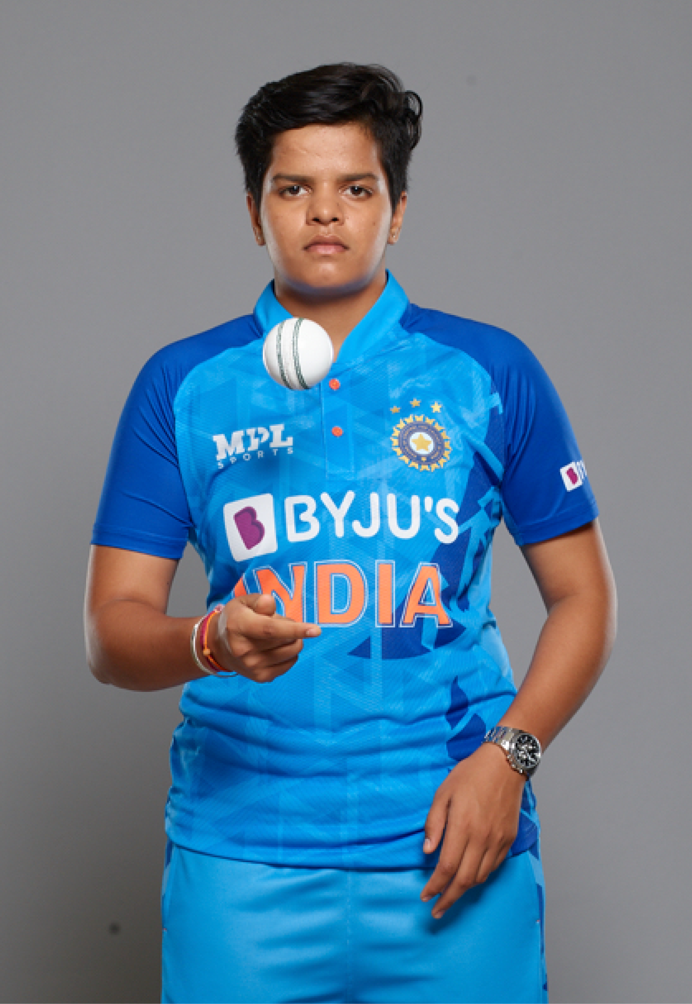This passion is represented by triangles on the jersey, they unify to create a bold, energetic pattern. Also enmeshed with this, are the petals of the BCCI logo, blown up to create dynamic swooshes on the right. A prominent light blue helps introduce a feeling of composure while a dark blue contrast enhances feelings of passion.